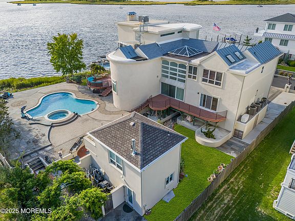 Looking for river-front, size, space, and luxury?! Well look no further because 1 Island View is hands down the best river-front offering in NJ right now! This is an absolutely stunning just under half acre bay front lot with an oversized ''grandfathered' extra wide dock and just one block away from the famous Sea Bright Beach. This home comes with over 7200 sq ft finished main levels plus a large basement mainly used for storage, an oversized long garage and a separate guest house/cabana on the property as well with a huge inground salt water pool and spa! Owners have spared no expense in updating and upgrading this 5 bed 5.5 bath custom beauty with the finest of detailed finished ranging from Marble and custom glass work to the tile and wood/trim selections throughout the home. Water views from each direction fully unobstructed and absolutely spectacular from pretty much every room. Not to mention roof top is absolutely jaw dropping and another hang out observatory and chill space along with balconies from multiple rooms in the home. All in all whether this is a summer home or a full time residence the value here is unmatched and certainly unparalleled because rebuilding this today on this lot would cost double. Come and see this beauty priced to sell quickly today!