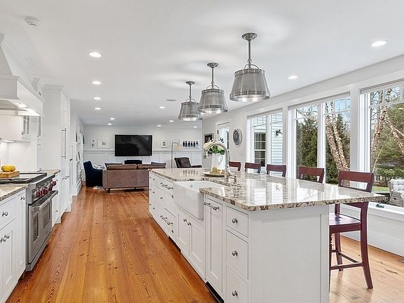 Completely renovated farmhouse with attached barn situated on 1.55 acres- this is truly a one of a kind property. The open floor plan combines the details of yesterday, with all the modern conveniences of today. The stunning gourmet kitchen is the heart of the home with oversized granite island, 48" Wolfe range, custom cabinets, pantry area and a wall of windows that overlook the bluestone patio, fire pit and private landscaped yard. The family room, dining room, home office/4th bedroom, mud room and half bath with laundry complete the first floor. Upstairs you will find a master, 2 additional bedrooms and a full bath. The attached barn has endless possibilities for future expansion or just enjoying as-is.The 2 barn sections, 23x25 and 37x27, contain a 4 car garage, workshop, storage and a 3 season game/movie room- perfect for entertaining. Updates include heating systems, electrical, full plaster walls, central air, radiant heat, irrigation system and so many more! Roof-2005