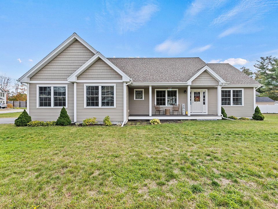 Enjoy relaxing on the charming front porch, made with durable vinyl for low maintenance, or entertain on the back deck. The home is equipped with heat pumps, highly efficient 2x8 construction, and superior insulation for year-round comfort. The kitchen boasts sleek stainless steel appliances, with hardwood floors flowing through the main living areas, carpeting in the bedrooms, and tile in the bathrooms, mudroom, and laundry for a stylish and functional touch.