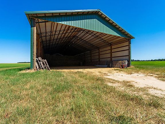 Large hay barnLong range ridgeline viewsDeveloped pasture landPlanted pinesCounty water access