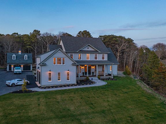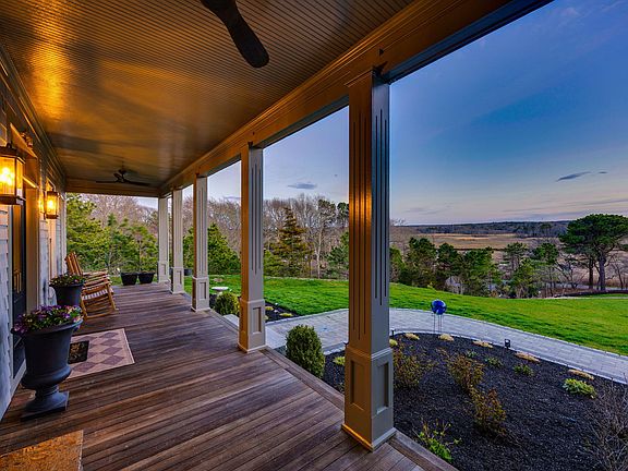 This spectacular home overlooking famed Scorton Creek has undergone a jaw-dropping transformation resulting in a daring, magazine-worthy farmhouse colonial perfect for those who love automobiles and entertaining. Exceptional water views from nearly every room, this home has a five bedroom septic (4 bedrooms in the house), with pre-plumbed septic line to the freestanding 2 car garage with unfinished space above - ideal for an accessory apartment. The sunny backyard can accommodate a pool and the mahogany farmer's porch is ideal to watch the pastel sunsets. Imported Irish chandeliers, custom cabinetry and tile work, gourmet kitchen with induction range, soaring ceilings, interior balcony, first floor primary with cove ceiling, and a massive list of updates and renovations make this a custom, as-new home for the discerning buyer. Four car garage for the toys that go fast and a billiard family room with water views for the evenings in with family and friends. Truly unmissable.