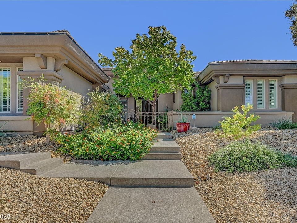Stunning Luxury living in this beautifully appointed single story home featuring a spacious open floor plan with four bedrooms, formal dining room, wet bar, crown molding and a cozy fireplace. The gourmet kitchen is a chef's dream-complete with granite countertops, a large island, breakfast bar, and walk-in-pantry. Step outside to your private backyard oasis showcasing breathtaking views of the Las Vegas Strip and mountains. Enjoy outdoor living at its finest with a covered patio, built-in BBQ, sparkling pool, spa with waterfall and lush landscaping. Additional highlights include a three-car garage with ample storage. This home offers elegance, comfort and stunning views- all in the prestigious Anthem Country Club Community
