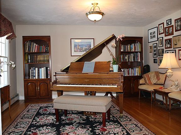 Abutting miles of conservation trails and located on a private cul du sac this warm and inviting family home is a traditional four bedroom, three bath, New England style Colonial designed for modern living. A large eat in kitchen with cherry cabinets opens to fire placed family room with cathedral ceilings and skylights and a three season sun room with gas stove, all overlooking a serene wooded setting. Fireplaced living room, formal dining room with bay window, generous kid's game room off mud room, great closets, large level backyard. This wonderful north Wayland neighborhood offers excellent commuting down Rt. 117 and is minutes from the Lincoln commuter train.