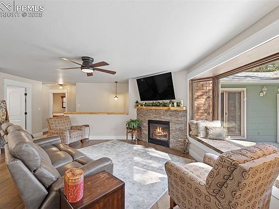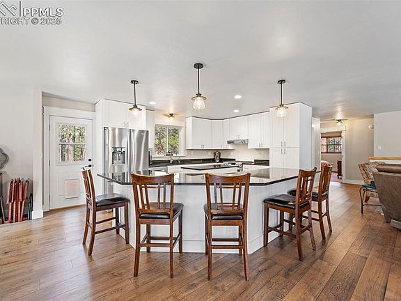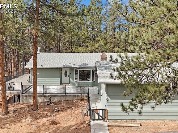This exceptional mountain property offers a perfect blend of peace and quiet while providing a wonderful country feel with no city taxes. It is located just 5 minutes from schools and less than 5 minutes to town, ensuring that you have easy access to essential amenities. The community creates a welcoming atmosphere for families. You’ll enjoy the benefit of great well water and an updated gourmet kitchen, ideal for culinary enthusiasts. The home features main level living for enhanced comfort and convenience, with a custom aspen mantle adorning the living room above the fireplace, adding a unique touch. The private master bedroom provides a relaxing retreat complete with a wood burning fireplace. The paved circular driveway leads thru the expansive 1.67-acre lot, complete with a back acreage fire pit perfect for gatherings and a volleyball court that easily converts to an excellent game area, as well as a well-appointed family/game room featuring a cozy wood-burning stove. If you’re interested in a pastoral lifestyle, you’ll appreciate the ability to have horses and farm animals as desired. The outbuilding is complete with a workshop. With only 2 owners, the property has been cared for and nurtured, showcasing a true sense of home. Enjoy peaceful winter evenings by the fireplace and take advantage of having trails for hiking and biking just 1 minute away. Moreover, the family-friendly Shining Mountain golf course is located just down the street, while the Red Rocks trail system is less than 4 minutes away, providing ample outdoor opportunities. The Woodland Fitness Center is located just 2 minutes from your doorstep. This property offers storage solutions that have exceeded our needs, alongside a gardening hut that has proven to be an excellent resource. Finally, an expansive deck makes outdoor entertainment a pure joy, completing the package of this dream home.
