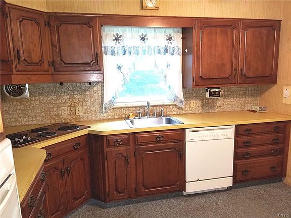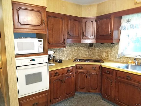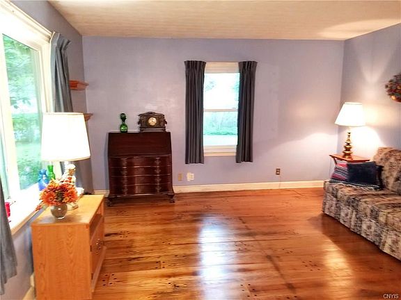 Enjoy this charming cape just a short walk to all the Village of Manlius has to offer. Beautiful large lot with lovely gardens and shade trees. Large living room and dining room with recently refinished wide plank pegged oak floors. First floor master bedroom and bath. Good sized eat-in kitchen was remodeled some years ago, but the cabinets are high quality and in good condition. All kitchen appliances included. Second floor bedrooms are spacious and at least one has hardwood floor. There is an older recreation in the basement. One car attached garage with new doors and opener. Many first floor windows have been replaced.