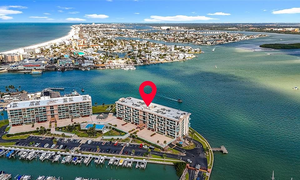 Welcome home to 1 Key Capri, Treasure Island, FL, 201E, a FULL-CORNER THREE-BEDROOM AND A TWO-AND-A-HALF-BATH 2ND FLOOR that is now available. NOW IS THE TIME TO BUY! This premier gated waterfront resort-style boating community boasts numerous amenities and lush tropical grounds—your private paradise is waiting. Come and discover a world where every Sunrise sparkles like diamonds over the Intercoastal, and every sunset paints the sky gold over the Gulf. Rarely available, a FULL-CORNER 2nd-FLOOR condo offers the ultimate blend of luxury, privacy and panoramic waterfront living. Once you enter through the charming blue front door, you discover a bright and airy open floor plan with a 3-bedroom, 2.5-bath, 1470 sq. ft. split- bedroom plan that includes two luxurious en-suites, ensuring privacy, comfort, and waterfront views from every angle—and the bedrooms are perfect for guests, family, or a serene home office retreat. This one-of-a-kind open layout flows effortlessly, where ceiling-to-floor Hurricane-rated sliders lead to an expansive oversized balcony, offering breathtaking waterfront views. It is truly a private retreat with sweeping vistas of sparkling waters, playful dolphins, gentle manatees, sailboats gliding by, and the lively John’s Pass. The gourmet kitchen provides plentiful storage, ample storage, and ample counter space, including a center island, apass-through eating bar and your private kitchen balcony that comes with a laundry area.Updates include new interior doors and new laminate flooring—a canvas ready for your personal touch. At Key Capri, every day feels like a vacation. Residents enjoy resort-style amenities just steps from your door: a heated pool and spa overlooking the Intercoastal and a private marina with direct Gulf access (when slips are available). Stay active in fitness. center, complete with his and hers locker rooms, hot showers, and a sauna. Gather in the social room or enjoy friendly competition in the billiards area. Outdoor enthusiasts will love fishing. from the pier or seawall, kayak launch, tennis and pickleball courts, and putt-putt golf course. Unwind under the tiki hut or host a barbecue in the BBQ area. A scenic walking trail and aPlaygrounds add to the community’s charm. Secure lobbies and 24-hour gated entry providepeace of mind. 1 Key Capri offers under-building parking for owners and overflow visitorsparking. This location is just minutes from Treasure Island Beach, Madeira Beach, and John’s. Pass Village, where shopping, dining, and entertainment are offered. This Treasure Island gem is more than a home—it’s a lifestyle where life slows down, sunsets linger, and every day feels like a vacation. Welcome home to 1 Key Capri, where luxury meets laid-back coastal living. Schedule your private showing today—this rare opportunity won’t last long.