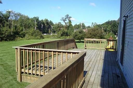 YOUNGER COLONIAL W/OPEN FLOORPLAN THAT INCLUDES KITCHEN W/ISLAND & DINING AREA THAT OPENS TO FPL FAMILY ROOM W/CATHEDRAL CEILING, DINING ROOM, FORMAL LIVING ROOM, & 1/2 BATH W/LAUNDRY. EXPANSIVE DECK OFF KITCHEN & FAMILY ROOMS HAS BEAUTIFUL VIEW & ACCESS TO FLAT BACKYARD! MASTER BEDROOM W/WALK-IN CLOSET & FULL BATH W/JACUZZI TUB & TILE FLR, TWO BEDROOMS & 2ND FULL BATH ON 2ND FLR. WALK OUT BASEMENT, 2 CAR GARAGE, CENTRAL AIR. THE SECOND FLOOR AND STAIRWAY HAVE BEEN FRESHLY PAINTED & CARPETED!