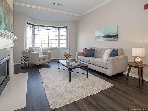 RARE OPPORTUNITY to live on the 4th floor at Somerset Condo Complex! This beautiful unit is turn-key! It has an open floor plan, 9ft ceilings, fireplace, crown moldings. The master bedroom has it's own bathroom with granite double sinks as well as two closets. 2nd Bedroom has a large closet ,bathroom with shower. The living room is bright and sunny with a lovely fireplace. Kitchen has stainless steel appliances, granite counters and a breakfast bar. Convenient laundry in unit. Secure building with lobby entrance,fitness center, community room with full kitchen and library. This unit has a detached garage , secure storage unit located on the lower level for additional storage space. The location is very convenient to Bishops Corner and all West Hartford has to offer!