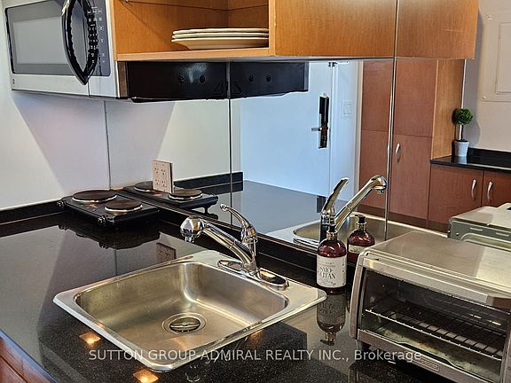 Open concept unitLot of natural lightFull size fridgeCook top burnerWasher and dryer