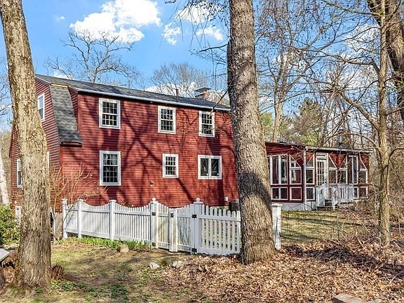 LOCATION, LOCATION, LOCATION!! This charm filled Gambrel sits on a corner ACRE lot in a sought after culdesac location close to town center, rt. 495, shopping & more! This one owner home has a new roof 2022, and new windows in recent years; enjoy the sunfilled kitchen w/granite counters & rich cabinetry incl multi pull out pantry which opens to fireplaced family room/den ; Lovely sunroom w/ woodstove overlooks the partially fenced yard partially wooded lot perfect for the pets or little ones. SEPERATE 2 CAR GAR in addition to the garage under offers space for more toys! Title V in hand & ready to GO!!