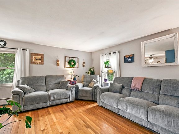Welcome to this charming one-level home. Enter into the inviting living room, where a cozy fireplace sets the scene for relaxing evenings, seamlessly connected to the adjacent dining area. The eat-in kitchen, featuring modern stainless steel appliances and ample space for casual meals. Down the hall, discover three bedrooms, all adorned with hardwood floors, and a full bath. If you need more space, the versatile finished basement provides just that, offering two bonus rooms and an additional full bath. The walk-out basement leads you to a serene stone patio in the backyard, ideal for outdoor gatherings and relaxation. Your new home is perfectly situated just moments from Merino Pond and Dudley Beach, where a variety of outdoor activities await. Enjoy the best of both indoor and outdoor living in this delightful home.