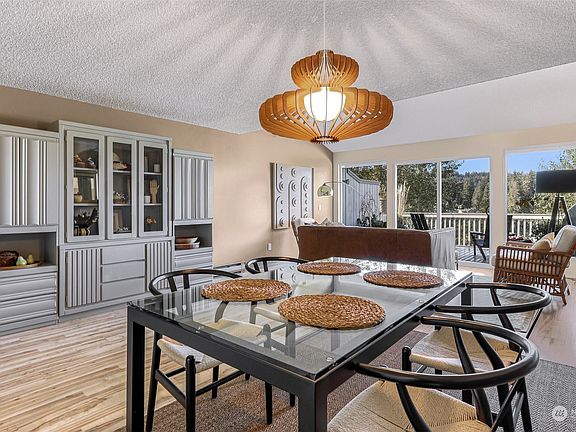 This charming Lakeridge condo overlooks Sudden Valley's natural beauty in desirable Gate 2. Tastefully remodeled from top to bottom, it has 2 spacious bedrooms + office/bonus room with ample storage throughout. The efficient kitchen has new appliances and quartz countertops, & the living area opens to a dramatic vaulted ceiling. A wall of glass opens to a sunny deck where you can enjoy mountain and golf course views plus glimpses of Lake Louise and Lake Whatcom. A private front porch is a shady oasis, & a single-car garage was converted into a finished room with heat. Lakeridge HOA fees cover a private pool, pickleball/tennis court & water/sewer. Close to SV trails, marina, beaches, dog park, library, gym/spa & more. Impeccable & rentable!
