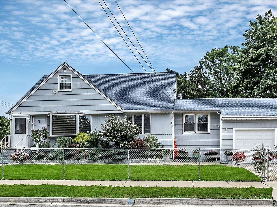 Welcome home to this Cape style home featuring gas heating & cooking, granite countertops, hardwood floors, king size primary bedroom, full basement with outside entrance, 2 year old roof, fully fenced in yard, this home is conveniently located to, elementary school, the LIRR, shopping, parkways, library, public transportation