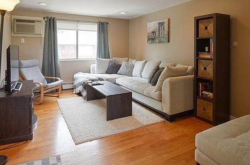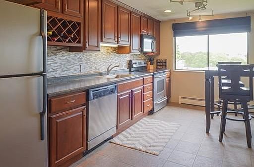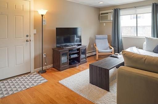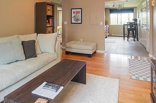 Back on market due to buyer's financing. This delightful, sunny garden condominium has been beautifully updated and is conveniently located to shopping, golf course, restaurants and public transportation. The open floor plan includes a large eat in kitchen, stainless steel appliances, tile floors and cherry cabinets. Oversized windows allow for plenty of light as well as pleasant breezes and hardwood floors shine throughout the living room and bedrooms. Marble tile and a roomy jetted Jacuzzi tub can be found in the bath. The in-unit washer/dryer is staying as well as the hip caf table and chairs in the kitchen as gifts from the seller. The many extras are; newer A/C unit, storage in the basement, 2 car deeded parking, common outdoor space for a barbeque and pets are welcome. If you have a busy lifestyle, this condo association is professionally managed and the monthly fee includes hot water, heat, water/sewer, exterior maintenance, snow removal and master insurance