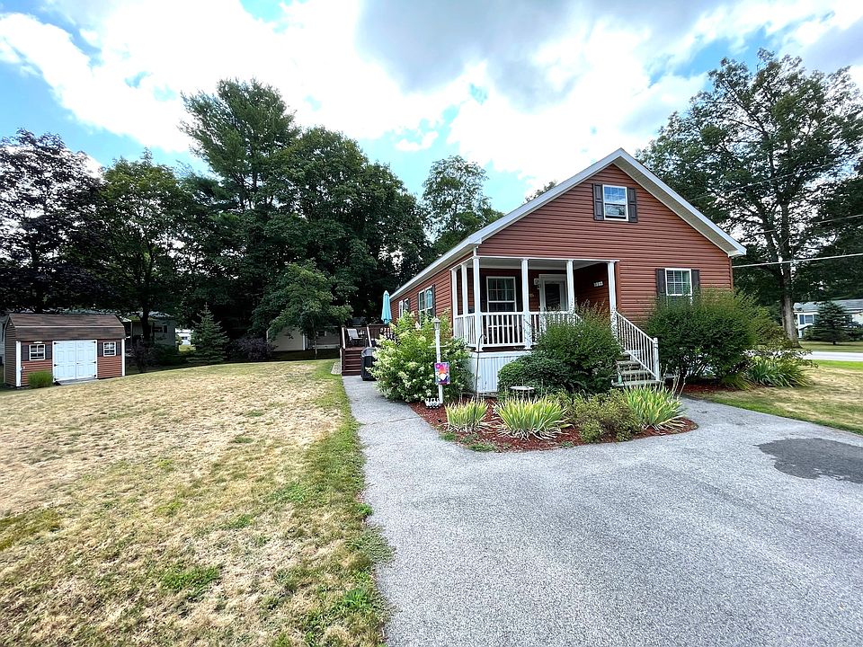 Built in 2017 this 28x48 Commodore offers a great open concept featuring carpeted living room w ceiling fan, spacious dining room to enjoy the Sunday dinners w the grandkids. Chefs kitchen with island, five burner gas stove, built in microwave, dishwasher, cool built in desk, tile backsplash and plenty of cabinets and counter space. Primary bedroom with walk in closet, three-quarter bath - shower only easy in and out and double vanity sink no more waiting!! Nice second bedroom, full bath w tub off hall. Separate laundry room, Central AC. FHA gas heat. Cherry on top is the full size walk up attic that will solve all your downsizing problems. Located on a nice cornet lot enjoy the serene yard from your oh so relaxing deck and come winter store your deck furniture in the sweet shed! You wanna live in this cinnamon girl, you could be happy the rest of your life, in this cinnamon girl. Check out the pictures, though none are at night, on the front porch together, chasing the moonlight, in this cinnamon girl. Reduced price! 1 Leewood Trail