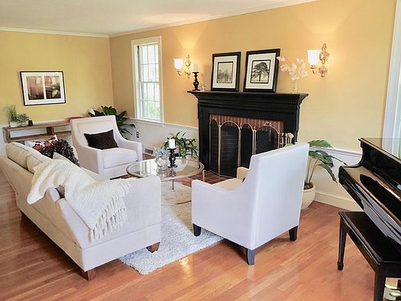 Classic center-entrance Colonial on beautiful tree-lined street in Marblehead's desirable Glover School neighborhood. Step into this meticulously maintained 3 bed, 2 1/2 bath home, boasting hardwoods floors, crown molding, wainscoting and custom built-ins throughout. Enter into the spacious, eat-in kitchen, complete with a large center island, and flow directly into the family room, featuring a vaulted-ceiling, wood-paneled fireplace, matching built-in window seats, and two sets of sliders leading to the yard on one side and the private, lush patio on the other. The formal living room, boasting a second fireplace, is located off the family room and the dining room, featuring built-ins, is located off the kitchen. 3 bedrooms are located on the second floor, including the master suite with an updated, spa-style bath, along with a second, updated full bath. Additional highlights include the finished basement, unfinished walk-up attic space and attached 2 car garage.