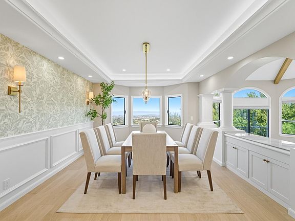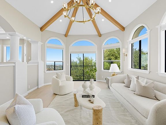 Welcome to the colossal view home of your dreams! 1 Lewis Ranch Road has a rich history of loving families creating core memories that echo through its grand halls. This 6 bedroom, 6.5 bathroom estate spans an impressive 5,600 sqft and sits on nearly an acre of land. Unlike anything else in San Carlos, grand entrance, original marble throughout, and sweeping views in every major bedroom and living space. Natural light pours in, dancing across the floors and filling the home with warmth. Outside, enjoy a 3 car garage with an attached gym, elegant front double doors, and a lush, mature garden overflowing with vibrant flowers, and trees. The backyard offers a fully fenced sports court in pristine condition, expansive turf, a tiered garden system, and a scenic lookout ideal for morning tea or an evening glass of wine. A recent $1.5M remodel transformed the interior, including a brand new chefs kitchen with top of the line appliances and a large Carrara marble island. The remodeled living room, formal sitting area, and dining space shine with designer wallpaper and a newly refinished fireplace. The primary suite is the ultimate retreat, boasting an oversized walk-in shower, freestanding soaking tub with 360 degree views. Families will love the access to highly acclaimed schools.