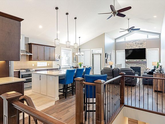 A rare executive style bungalow, meticulously maintained, and fully loaded awaiting its new lucky homeowners in Spruce Grove! The home's beauty begins with stunning front landscaping on the corner lot, with sure to impress curb appeal as you enter the front door. Passing by the front den, you're welcomed into the open concept main floor adorned with hardwood floors, expansive chefs kitchen with SS appliances and gas stove, and cozy living room with gas fireplace and vaulted ceilings too. We can't forget the walkthrough pantry into the laundry/back mud room with access to the oversized HEATED double attached garage including man door to the backyard. Completing the main floor is the generous primary bedroom with 5 pc ensuite and walk in closet. The professionally finished basement adds another 3 great sized bedrooms, full bathroom, and living room with wet bar. In floor heating makes this space comfy year round! Finished off with a private backyard and fantastic location - this home is tough to beat!