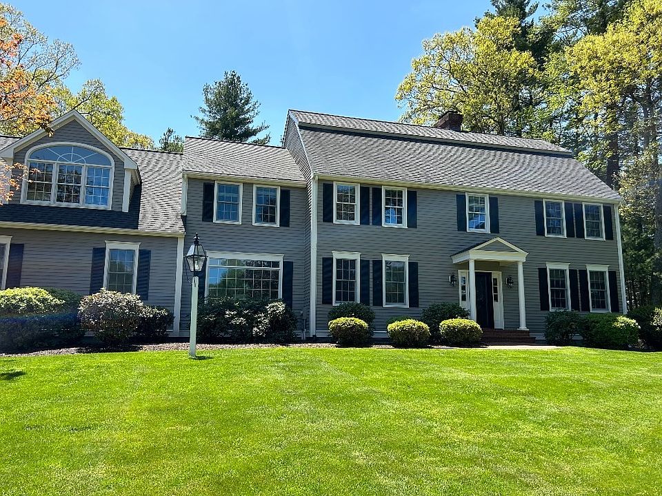 Enjoy this grand colonial on premium 2+ acre setting in desirable Southern Acres neighborhood. This 4,000+ sq.ft. home sits back on a corner lot with acres of private land. The main floor features newly refinished hardwood floors throughout. A spacious kitchen includes white cabinets, stainless appliances, center island, and dining or reading area with gas fireplace. French doors open to a brand new, all season sunroom overlooking a level and picturesque backyard. A second fireplace graces the family room and custom molding frames the walls of the dining room. An office, formal living room, and powder room complete this level. Upstairs, the generous primary bedroom offers a walk-in closet, newly installed hardwood floors, and a renovated en suite bathroom. The second floor also includes an oversized great room with back stairway, an additional three bedrooms, and newly renovated guest bathroom. New Andersen windows throughout. This home is move-in ready!