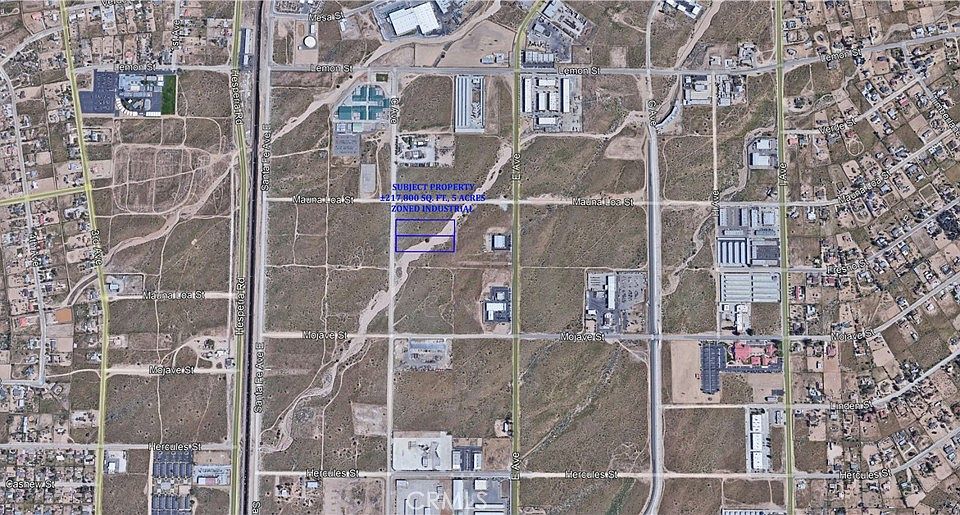 Two (2) contiguous vacant land parcels totaling ±5ac sold jointly as one offering. Situated on the east side of C Ave just one parcel south of Mauna Loa St in the City of Hesperia. Zoning is GI – General Industrial which accommodates enterprises engaged in manufacturing, processing, creating, repairing, renovating, painting, cleaning, or assembling of goods, merchandise or equipment. This zone is intended to provide the full range of manufacturing, fabrication, assembly, warehousing and distribution use types associated with heavy industrial land uses, including outside manufacturing, warehousing and storage. There is a drainage course which runs through the parcel, but at least a portion of the land sits outside of the drainage area.