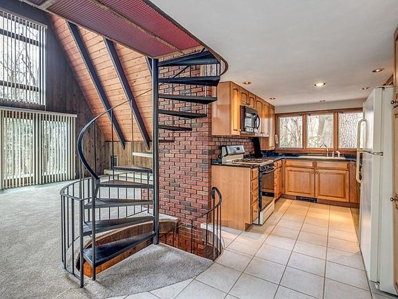 Buyers inability to secure financing means you get a SECOND CHANCE! This A-frame style home is nestled privately on 1.25 acres off a private road & boasts high ceilings, oversized windows & an open concept. Natural light floods the living room while the gas fireplace provides that cozy feel for winter nights. The updated kitchen, complete with granite counters and beautiful cabinetry, makes entertaining easy. A first-floor bedroom and bathroom make for easy living while the lower level offers more entertainment space, complete with another fireplace, wet bar, and sliders to the back yard. The second floor offers a master bedroom with beautiful wood built-ins, his & her closets and a balcony overlooking the rear yard. Updates include NEW FURNACE, NEW SEWER MAIN, NEW SEPTIC being installed, NEW CARPET. Gather friends & family round for old fashion outdoor parties, firefly catching, and fireside chats. This property has much to offer with potential to spare!