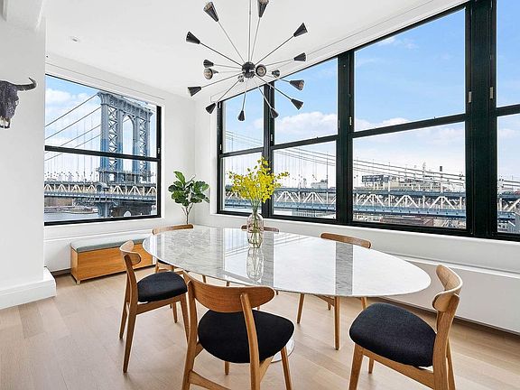 Everything was thoughtfully designed with no expense spared. This now true 3-bedroom, 2.5 bathroom, plus a home office spans across approximately 2,477 +/- sq. ft., surrounded by walls of over-sized windows and showcases jaw-dropping views of the Manhattan Bridge, Brooklyn Bridge, Brooklyn Bridge Park, East River, and New York City Skyline.