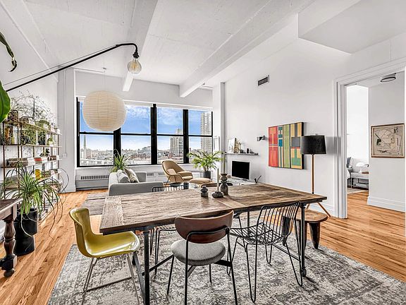 Welcome to 1 Main Street 12F! This spectacular approximately 1,293 sq. ft., one bedroom, one and half bathroom is located in the iconic Clock Tower Condominium. The home boasts an expansive a wall of oversized windows that frame a breathtaking cityscape backdrop with views of the Manhattan Bridge, Williamsburg Bridge, East River, and Brooklyn Bridge Park. The expansive living and dining areas allow for various layout arrangements help create the perfect space for everyone's vision. The open and airy layout is complemented by beautiful and consistent natural light that floods the space. In the open gourmet chef's kitchen, you will find stainless steel appliances such as a SubZero refrigerator, Thermador oven/cooktop, and Bosch dishwasher. Plenty of cabinetry and open shelving accommodate both style and functionality. The sun-drenched primary bedroom highlights a spacious custom-fitted walk-in closet and a luxurious en-suite bath featuring a separate enclosed shower and a deep soaking tub. Rounding out this amazing loft are 12 concrete beamed ceilings, hardwood flooring throughout, an abundance of storage, a large laundry room, a powder room directly off the foyer, and central air conditioning. This home truly embodies the essence of true DUMBO loft living. The Clock Tower Condominium, DUMBO's premiere loft building, has a magnificent marble lobby with 24-hour concierge service, a bright, well-equipped gym, and an adjoining common roof deck, bike room, and storage center. The Clock Tower Condominium is located near Brooklyn Bridge Park, Empire Stores, Janes Carousel, St. Ann's Theater, restaurants, shopping, A/C/F subways, Water Ferry, and all that DUMBO has to offer.