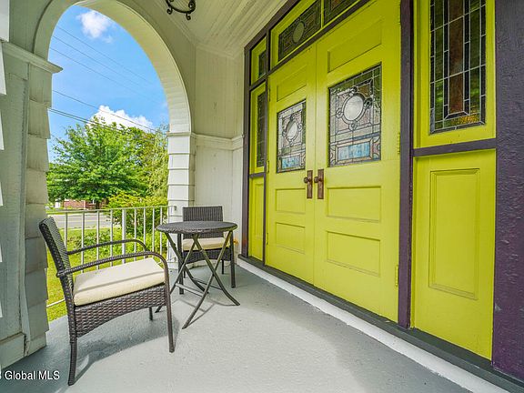 Welcome to this unique and enchanting converted church home, where history meets modern convenience. Nestled in a serene neighborhood, this property boasts stunning stained glass windows and a fully functioning bell tower, offering a truly distinctive living experience. With recent updates and an array of features, this captivating residence is move in ready and waiting for you to call your own. Currently configured as a two bedroom one bath home with an expansive studio space, the possibilities are only limited to your imagination. There are (3) heating zones one of which is the sanctuary space. Average annual gas and electric runs approximately 300.00 per month heating the entire space.