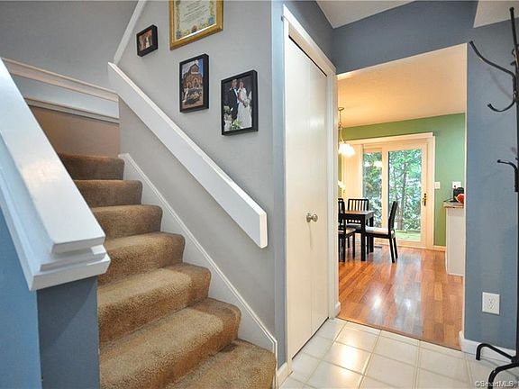 Fall in love as sun streams throughout this bright & light end unit townhouse in desirable gated Farmington woods. Enjoy this newly painted, open floor plan, townhouse highlighted by new installed floors on the upper level, Windows have all been replaced with People Brand triple pane windows and a lifetime warranty. The living /dining room w/cathedral ceilings is perfect for entertaining & enjoys a fireplace w/a wall of windows for added brightness. Charming eat-in kitchen w/white cabinets, granite counters & stainless appliances and an island ideal for gatherings adds to todays up to date look.. Sliders lead to the outdoors & patio to further enhance your living spaces. A half bath is adjacent; the laundry/mud room accesses the garage. No need to walk out in the cold. Your attached garage is right here for easy convenience & unloading of your groceries. The upper level has a spacious master bedroom w/updated dressing area, 2 closets & full bath with new granite counters, sinks and vanities that can also be found in all three bathrooms. Two other generously sized bedrooms share a full bath also with those updated fixtures. There is a newer hot water heater and newly installed central air. All the work has been done . Add your own decorating touches while savoring in the lifestyle of all that Farmington Woods offers: swimming, tennis, paddle ball, pickle ball, golf, walking rails, gardening and more. Hoa + $35.00 food minimum & +46.73basic cable Quarterly District ax= $524