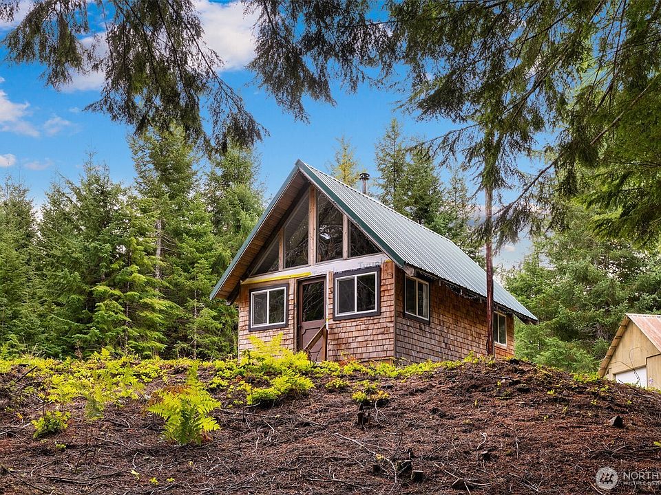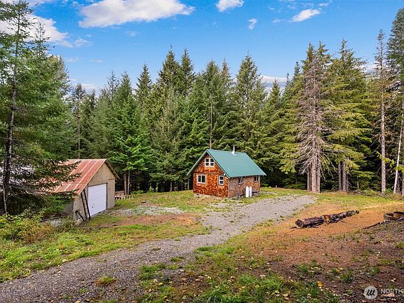 Nestled in the foothills of Mt. St. Helens, this cozy 1-bed, 1-bath cabin with loft has been beautifully renovated and crafted with detail throughout. Offering just under 500 sq. ft. of off-grid comfort, the vaulted ceiling, wood stove, and propane appliances make it feel both rustic and refined. Outside you’ll find a shop, fire pit, and even two secret underground bunkers. Set on 5 private acres of merchantable timber with unmatched seclusion, this turnkey retreat connects you directly to snowmobile trails, hiking, fishing, hunting, reservoirs, Ape Caves, and the Lewis River Recreation Area. long/lat 46.08831, -122.10205