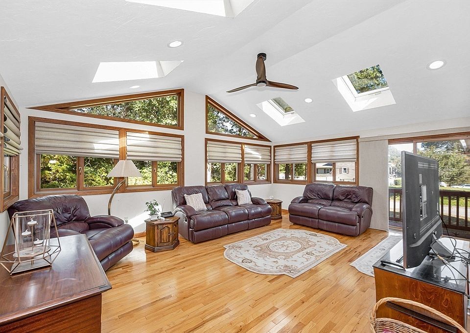 Gleaming hardwood floorsTranquil neighborhoodSpectacular heated sun roomModern appliancesWell designed kitchenWalls of windowsSoaring cathedral ceilings
