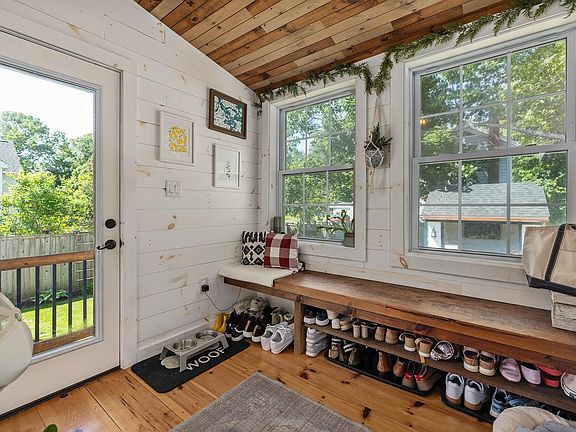 Step inside what might just be the most adorable home in Portsmouth! Starting in the stylish & functional mudroom it provides a seamless transition from the outdoors. The kitchen offers timeless finishes with stainless steel appliances, a farmhouse sink & an additional side table with cabinetry & beverage fridge, perfect for hosting gatherings. The dining room showcases a cozy window seat, adding a quaint touch to the space. The home has hardwood floors throughout, adding warmth & character. A ½ bath & living room round out the first floor. Upstairs, discover a convenient laundry area, along with 2 good-sized bedrooms both with ample closet space. The full bath has been tastefully renovated. Outside, the fun continues with attractive space featuring a large deck, an outbuilding equipped with a TV & bar setup, ideal for entertaining friends & family. The fully fenced-in yard with raised garden beds offers privacy & a lovely place to relax & unwind. Located just ¾ of a mile from the happening West End & 1 ½ miles to Downtown, this home offers the perfect blend of convenience & charm. Don't miss out on the chance to make this delightful property your own! Showings begin Thursday 6/13.