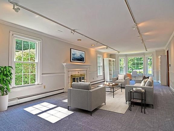 Rare find on much desired neighborhood, Mercer Lane! Private bonus rm over garage for at home office/bedroom with its own stairway and handy half bath below. Grand open foyer, kitchen, family rm, dining rm, bar area all w/newly refinished hardwoods. Stunning cathedral family rm with fireplace, built-ins opens to oversized kitchen w/island cooktop, eating area, both w/sliders to newer huge deck w/two sunsetter awnings all overlooking wonderful landscaped yard. Laundry rm off kitchen. Dining rm is stunning with tray ceiling and wainscoting. Sunny front to back living room w/ fireplace and walkout bay. Very spacious bedrooms, master with walk-in closet, full bath w/double sinks, sunken tub. Bonus room over garage, for bedroom or office with its own stairway and half bath handy below. Important maintenance items performed as needed: Buderus boiler, water heater, oil tank, windows, sliders, roof, exterior and interior paint, garage. Good commuter location!