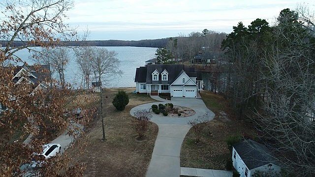 An impressive, luxurious waterfront home located in an upscale subdivision near I-85. Excellent construction & features a Main bedroom and 1 1/2 bath on the main level. The upper level has two large bedrooms, two undesignated rooms & 1 full bath. The basement has one undesignated room, full bath, rec room, wine cellar, and small kitchenette/bar for family activities & entertainment. This home features all the amenities one could ask for, granite countertops, an alarm system, hardwood floors, large rooms, Hugh lakeside patio, trex decking, a gently sloping lot, underground irrigation, utility building & concrete drive. The double boathouse has two large sun trex decks and a boat lift. This is a great Lake home to enjoy with family and friends for years to come. Low maintenance exterior allows for Lake enjoyment protection on your investment—eight feet of water depth at the end of the boat dock at the listing date.
