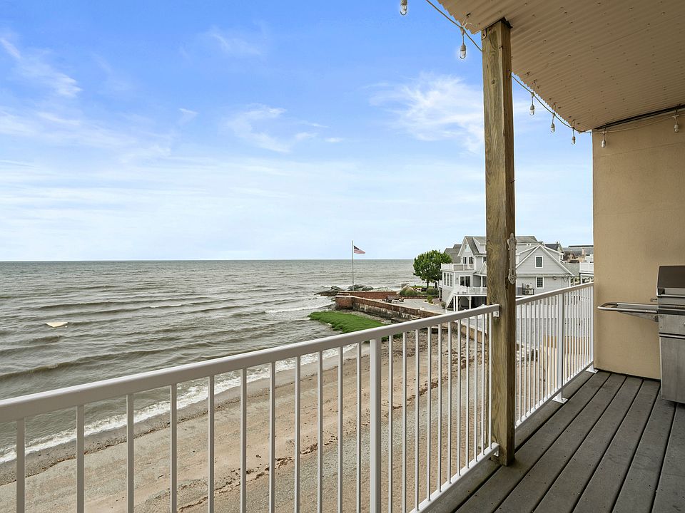 Experience the ultimate in coastal living w/this stunning direct waterfront condominium, offering breathtaking views of Long Island Sound & your very own private sandy beach. This light-filled, end-unit home features 2 spacious bedrooms & 2 full baths, all designed w/comfort and elegance in mind. The open floor plan seamlessly connects the living room, dining area, & kitchen-each space showcasing spectacular water views through expansive windows. Step out onto your generous private balcony to enjoy morning coffee or evening cocktails while overlooking the picturesque Milford shoreline. Inside, you'll find quality craftsmanship throughout, including gleaming wood floors & a recently renovated kitchen complete with granite countertops & stainless steel appliances. A cozy gas fireplace in the living room adds warmth and charm, while the master suite offers a peaceful retreat w/abundant closet space, a luxurious soaking tub, and double sinks. Convenience is key with ELEVATOR access to all floors and two staircases-one leading directly to the beach. As an end unit, this home boasts exceptional natural light, superior views, and enhanced privacy. Embrace the best of shoreline living with swimming, fishing, kayaking, sunbathing, and beach walks just steps from your door. Other amenities include a 2 car tandem garage and CAC. Located close to restaurants, shopping, Milford Train Station, I-95, Route 15, Yale, & Downtown New Haven, this is a rare opportunity you won't want to miss!!