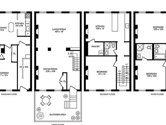 Video Tour Available Upon Qualified Request Available Now! 2 family townhouse including garden office/apartment and owner's triplex above. 1 Minetta is a gated Italianate townhouse that exudes charm with tasteful upgrades for 21st century convenience while retaining the historic character of the home. Zoned for both commercial and residential use, featuring 2 separate entrances, 1 Minetta Lane provides an array of possibilities to a tenant looking for practical, private and secure living. Garden unit: Recently renovated 1 bedroom apartment including in unit washer/dryer, stainless steel appliances and decorative fireplace. Approximately 684 square feet. Owner's Triplex: Featuring 3 Bedrooms/3Baths and Washer Dryer On the first floor is an entry hall, a classic double parlor with high ceilings accented by two decorative fireplaces with detailed mantles, and built-in bookcases. A gracious stairway leads to the second floor with a spacious eat-in kitchen and family room that features stainless steel appliances, ample light from three windows, and large walk-in pantry with washer/dryer. Off the hall, there is a full bath, and a separate bedroom or home office with beautiful inlaid parquet floor and decorative fireplace. The third floor has two bedrooms, each with en-suite bath and skylights. A recent renovation, central air-conditioning, oak hardwood floors, and a furnished private gated courtyard ideal for outdoor living complete the profile of this home. Ideally located, 1 Minetta Lane is only one block from NYU Law School, Washington Square Park, The Little Red schoolhouse, and all modes of public transportation. With the New School, and some of the best specialty food stores in Manhattan all within walking distance, this is the place to be. All showings by appointment.