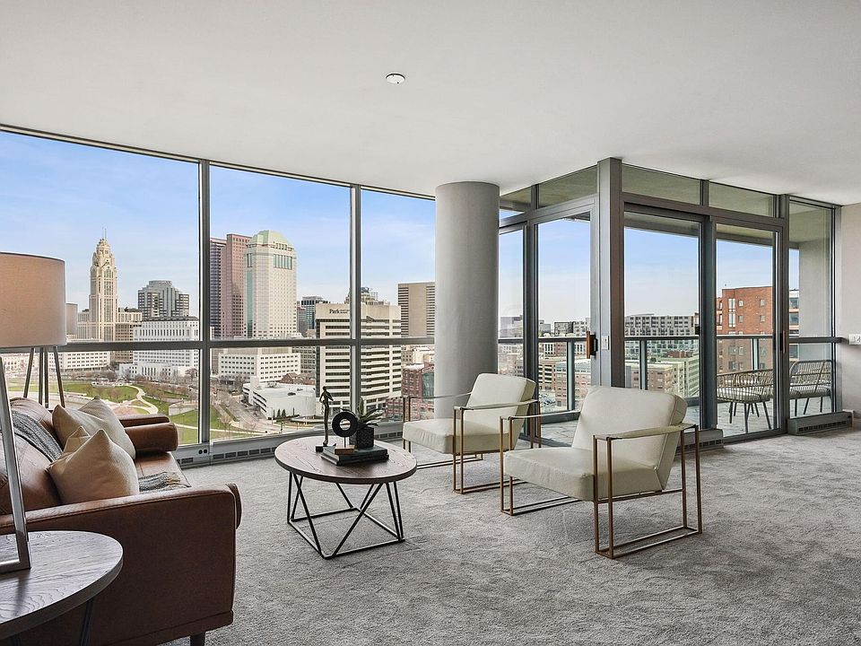 Truly the finest address in Downtown Columbus. Breathtaking dawn to dusk views of the skyline are offered from the floor to ceiling windows of this iconic property. White glove service & outstanding amenities are offered to residents. Updated with new fixtures. Freshly painted and new carpet. An entertainers dream that offers a spacious Chefs kitchen featuring granite counters, designer cabinetry, Sub Zero refrigerator/freezer, walk in pantry. Full sized laundry room with side by side washer & dryer included. Additional storage and 2 parking spaces included with this property.