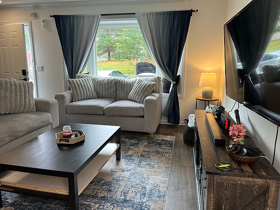 Move into this private end-unit townhome located at the end of a serene cul-de-sac surrounded by woodlands. This spacious two-bedroom, two-and-a-half-bath home offers a bright and open floor plan with a comfortable living room, fireplace, and sliding doors that open to a private deck perfect for relaxing or entertaining. The bright open kitchen features updated countertops, freshly painted cabinets, stainless steel appliances, and a new island connecting the dining and living areas. The remodeled main-level half bath includes a new sink, vanity, and mirror. Enjoy newer vinyl flooring on the first floor, modern ceiling lighting in the finished lower level, and a cozy wood-burning fireplace with a stainless steel liner and custom storm collar for the flue. Additional updates include basement ceiling tiles and full interior repainting across all levels. The lower-level walkout provides a comfortable den, office area, and laundry space. Detached one-car garage plus two parking spaces. Conveniently located near highways, shopping, parks, the library, and medical facilities. Audio and Video surveillance through out the property.