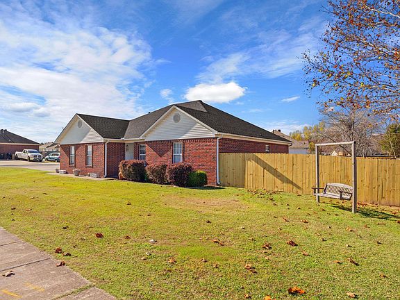 Welcome to this beautifully updated all brick 3-bedroom, 2-bath home offering 1,511 sq ft of comfortable living. Enjoy major upgrades including a new roof (2022), new HVAC (2025), and a new 12x16 deck perfect for relaxing or entertaining. The backyard is fully fenced with sections of new fencing, plus a storm shelter that can hold 8–10 people and a storage shed for added convenience. Inside, you're greeted by a spacious vaulted living room with a cozy fireplace, ideal for the colder months. The kitchen features newer appliances and an efficient layout. The split-bedroom floor plan provides excellent privacy, with two guest rooms separate from the primary suite. The primary bath offers a double vanity and a linen closet for extra storage. Located near schools, highways, and amenities, this home blends comfort, updates, and convenience. Plus, it's Rural Development eligible, making it an exceptional opportunity. Don't miss this opportunity to make this home yours!