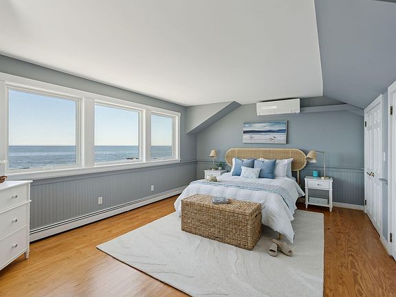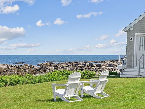 Perched along the pristine shores of Biddeford's coveted coastline with commanding views of the Atlantic, 1 Moore Lane is a rare 0.52-acre oceanfront sanctuary that tastefully blends timeless New England architecture with understated luxury. This distinguished four-bedroom, three-bathroom residence spans 2,458 sq ft and offers refined coastal living in one of Southern Maine's most desirable enclaves. At the heart of the home lies a sun-filled chef's kitchen designed to capture the beauty of the sea at every angle. Outfitted with sleek soapstone countertops, custom maple cabinetry, a Wolf gas cooktop with professional-grade hood, built-in wall ovens, and a walk-in pantry, the space balances form and function with effortless sophistication. The adjoining living and dining areas flow seamlessly to dual oceanfront terraces - ideal for elevated outdoor entertaining against the rhythm of the waves. The sun-drenched family room features soaring vaulted ceilings with exposed beams, exquisite hardwood flooring, and a striking stone gas fireplace that anchors the space with warmth and character. Designed with both privacy and comfort in mind, the home's layout includes a private bedroom wing with an adjacent full bath and steam shower, while the opposite wing offers two additional bedrooms, a full bath, laundry, and a dedicated office with fireplace and direct access to the deck. The renovated primary suite is a coastal haven, where expansive windows frame uninterrupted ocean vistas and natural light pours across warm hardwood floors. A spa-inspired en-suite bath appointed with marble finishes, a frameless glass shower, and polished chrome fixtures add to the design. Each space is generously proportioned and curated to evoke a sense of serenity, elegance, and enduring quality for both quiet retreat and stylish hospitality. Within minutes from the beautiful beaches of Biddeford, Kennebunkport, UNE, local restaurants/bars, & downtown! Make it yours today!