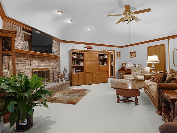 First time on market by orig. family this single story custom home will delight any buyer seeking a quality location, neighbors, new HVAC & garage door in 2025. Wood burning fireplace w/extra wide hearth in the living room. Kitchen appointed with loads of cabinets and roomy space for dining. Covered back patio just perfect for porch rocking. Circle driveway level, and low maintenance landscape. Split floorplan with second bedroom having an office/sitting area. Master has 3 closets. Good for multigenerational living or a home office. Easy to show, no pets. Roof is 6yrs old. Easy to show and a few minutes inside the main West Gate for all the amenities inside and outside the village gates. Handicap friendly very easily if desired. Close to Lake DeSoto to enjoy golfing & dining at the DeSoto Club. Nearby trails and Eagles above. Waypoint Marina & Cafe, and so much more for resort living in the Ouachita's!