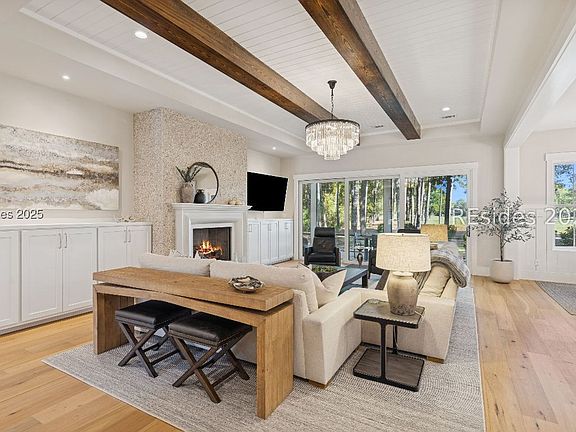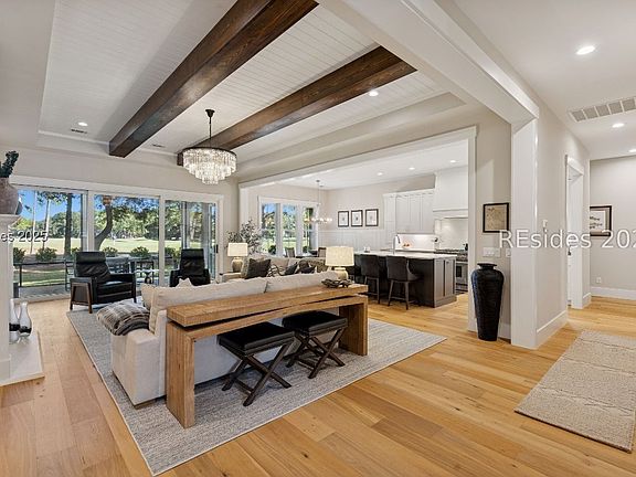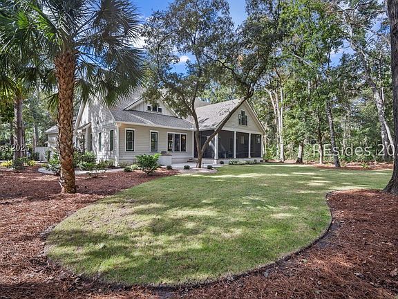 This newer Lowcountry home is nestled in Colleton River Club, one of Bluffton's most sought-after private golf enclaves. Blending timeless Southern architecture with elevated, modern comfort, it offers long fairway views of the 10th hole on the Nicklaus Course. A welcoming foyer and private study lead into an open floor plan flooded with natural light, creating an inviting and sophisticated atmosphere. The bright, spacious kitchen features a generous island and chef-friendly layout that flows seamlessly into the family room, where beamed ceilings, a cast limestone fireplace, and custom finishes combine to create warmth and character. Triple sliders expand the living area to an oversized screened porch with a fireplace-a year-round retreat for morning coffee, cocktails, or casual gatherings. Just beyond, a patio with a built-in grill overlooks the private backyard and manicured fairway. The owner's suite serves as a serene retreat, complete with dual walk-in closets and a spa-inspired bathroom. Two additional bedrooms on the main level provide comfort for family and guests, while a fourth bedroom above the garage offers versatile space for a guest suite or media room. Life at Colleton River Club offers exceptional amenities within a welcoming and well-connected community. Residents enjoy two world-class golf courses, designed by Jack Nicklaus and Pete Dye-each anchored by its own clubhouse offering dining, events, and panoramic water views. The community also features a state-of-the-art fitness and wellness complex, tennis and pickleball courts, a resort-style pool and café, and a deep-water dock for boating, kayaking, and sunset cruises. Scenic trails, social clubs, and year-round events foster a vibrant connection among residents, making it easy to feel at home. With its open design, refined finishes, and prime proximity to the Nicklaus Clubhouse, 1 Mulberry Road embodies the perfect blend of luxury, comfort, and Lowcountry charm-an exceptional opportunity to live and play in one of Bluffton's premier golf communities.