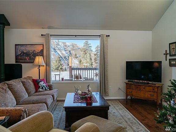 Immaculate up-scale rambler nestled in the Methow Valley. Only 30minutes to the attractions of Winthrop or Chelan. Spacious open-concept living, kitchen & dining room welcomes you home w/vaulted ceilings, clerestory windows & stunning wood-burning stove. Cook's kitchen w/custom soft-close cabinets, sliding shelves, quartz counters, stainless Whirlpool appliances & extra deep stainless sink. Expansive master features en suite bath w/one of two 20inch deep soaking tubs & walk-in closet. High-end finishes continue w/solid wood doors & trim throughout. Bask in the river & mountain views from every direction. Both 300foot wood deck & 300foot patio in front. Deeded river access, 8x12 storage shed & huge 2.83acre level lot w/fire-wise landscaping.