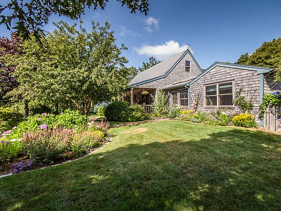 CLASSIC KATAMA FARMHOUSE ---Tucked away in a quiet Katama neighborhood of substantial homes sits this well maintained and beautifully landscaped home. Here is your opportunity to create your dream home in a highly desirable location near the Field Club with easy access to South Beach and other Katama attractions as well as downtown Edgartown and all that it offers. This casually styled and comfortable home offers one floor living with multi-purpose spaces as well as a separate garage/storage structure. Enjoy the perennial plantings from the relaxing front porch or the spacious rear deck. That porch has been known to morph into a delightful, twinkly lit dining space for 20 and the garage/storage area into a terrific recreation area. There is a private Master bedroom wing at one end and a 3 bedroom wing at the other with the kitchen, dining and living areas at the core. The lower level features a family room that provides nearly an additional 400 sf of living space. A spacious storage/laundry room and an exterior egress for ease of access complete that level. See 3 D Video Tour