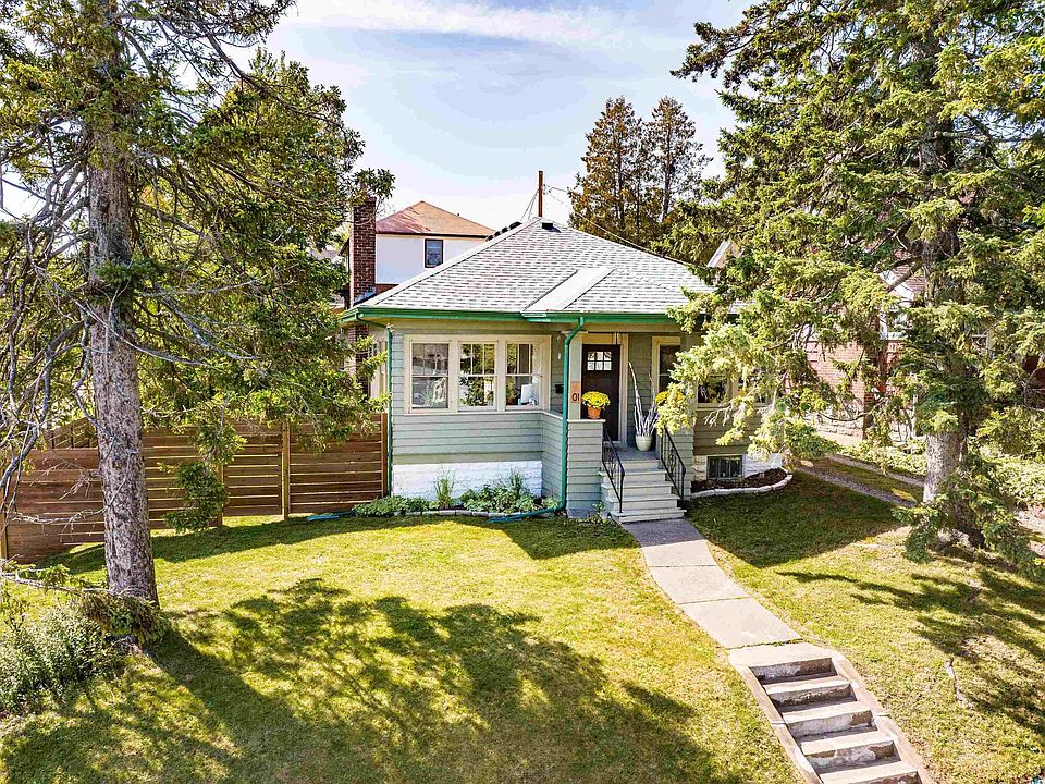 Renovated 2-bed, 2-bath, 1 car detached garage, Congdon bungalow on a beautiful corner lot! Catch the Lake Superior sunrise - and partial lake view - through the living room’s many east-facing windows. Between the room’s Jøtul wood stove and cozy radiant in-floor heat, you’ll be enveloped in a blanket of warmth all winter long. Modern, updated open-concept kitchen with vast countertops, abundant lower cupboard space and upper shelving, a large center island with a cooktop and range hood, a chic subway tile wall, and new stainless steel appliances. The room even boasts updated plumbing and electrical! Seat dinner guests at the island or in the adjacent dining area off the kitchen. Subway tile continues in the newly renovated full bath. Two bedrooms, built-in cabinetry in the hallway, and elegant refinished floors throughout finish off this airy level. If you’re not already convinced that the owners thought of everything, you will be when you discover a lower-level 3/4 bath, complete with a tiled shower. The rest of the lower level is a blank canvas! You’ll also enjoy the benefits of a newer roof, newer back stairs, some newer windows, newer entry doors, and fresh paint inside and out. And if outdoor living space is high on your priority list, you won’t be disappointed. Beautiful backyard landscaping, including perennials and a vegetable garden, a 2-tiered patio with a fire pit, a woodshed, and that iconic lake view come together to create a backyard oasis. There’s even a privacy fence! All this and more, close to K-12 schools and a half a mile from the lakewalk.