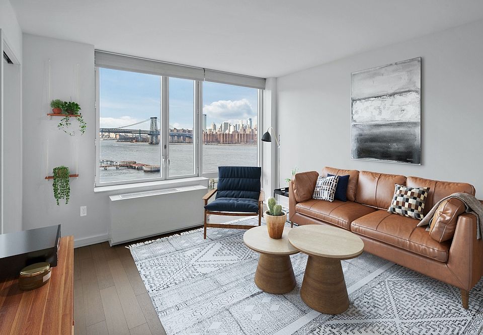 NEW TO MARKET HIGH FLOOR SPACIOUS 1BR with SUNNY NORTH/EAST WATER VIEWS Move-In 8/6 1 North 4th Place is waiting for you. Located on the waterfront in Williamsburg, facing the East River, the apartments have the best views in the borough. In addition to the floor to ceiling windows the units have solid grey oak flooring, stainless steel appliances, stone countertops and a washer/dryer in every unit. In partnership with LivUnLtd, 1 North 4th has a fully programmed amenity floor which includes: Outdoor swimming pool 8,500 sf sun deck with outdoor theater 5,000 sf state of the art Technogym fitness center Spinning and Yoga room with virtual on demand classes Media lounge and game room Tenant lounge with catering kitchen and bar Children's playroom Other building amenities include: 24-hr doorman/concierge Valet service with dry cleaning, pet care and housekeeping services Business center with library Private storage and bike storage On-site parking garage Ferry access conveniently located on pier on the Westside of the building Please schedule a showing with our on-site leasing. Leasing office open daily except closed Tuesday. Brokers - CYOF * Images are representative of our renovations and may not be of the actual unit. This is an exclusive listing by 1N4 leasing office. 1 year lease available. Equal Housing Opportunity. No Broker Fee. Unauthorized reproduction of this ad and/or its images in whole or partially is prohibited. Guarantors Accepted.