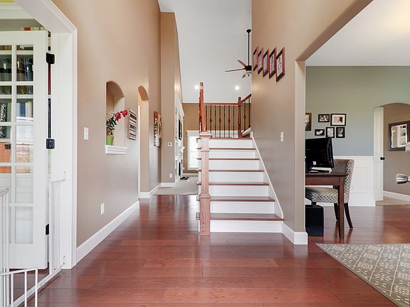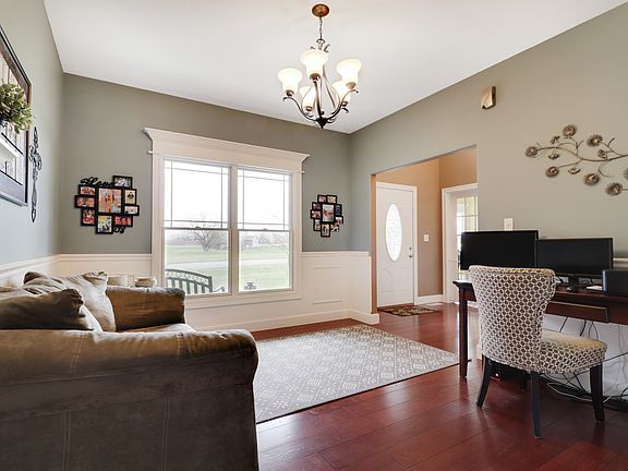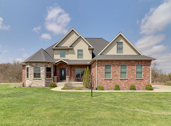 Amazing 1.5 story, custom built, home that you do not want to miss! 1st floor master w/ beautiful ensuite. 4 beds, 3.5 bathrooms. A large upstairs bonus room that can be used as an additional bedroom. Open floor plan with grand vaulted ceilings and beautifully molded built-ins in the family room. The kitchen features an island and large eat it space, (appliance stay) The separate dining room and den can be used as office space or creative rooms, these rooms face the front of the home providing lots of natural light for those work from home days! The entry way of the home, dining and office space boast gorgeous hardwood floors. The full finished walk out basement features a dedicated theater room with a projector system, (will stay with home) The basement also provides large bedroom, full bathroom, and additional family room. As well as, wet bar area for entertaining! Excellent cement floors in bathroom and bar area. There are two exits from the walkout; a 4th garage stall that specifically houses a riding lawn mower for this beautiful lot, and a second level patio under the main floor deck! The perimeter of this lot is equipped with an underground electric barrier to keep pets safe. The basement provides an abundance of unfinished storage space and one of two HVAC systems in the home. This home is minutes from El Paso golf course and just a 20 minute commute to Bloomington! So if you want a quiet rural feel, space from neighbors, but not too far from the action... this is the home for you!