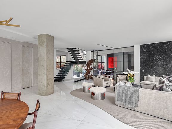 Modern townhouse living with all the conveniences of a full-service doorman building. This 7,000-square-foot residence offers 5 bedrooms and 4.5 baths across three expansive floors, all accessible through a private entrance off the street. Rare for any New York home, it includes a two-car garage with direct access along with a full time doorman and private 1,200-square-foot outdoor garden.