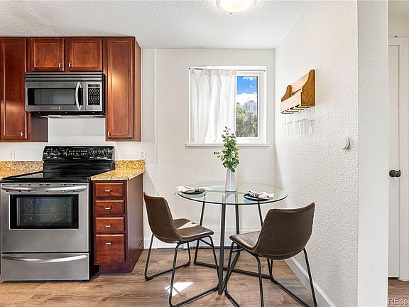 This super cool urban condo is ideally located in the much sought after Speer Neighborhood with an easy commute to Wash Park (1.8 miles), Platte Park shopping on Pearl (2 miles), Cherry Creek Mall (2.2 miles) or just blocks to the shops on Broadway. Located close to Light Rail Stations and the Cherry Creek bike path too! Inside, you will find a light filled open living concept in this southwest corner unit. The living room has a large closet with custom ELFA shelving plus access to a patio for your morning coffee or evening happy hour. The kitchen is decked out with stainless steel appliances, granite counter tops and a kitchen nook. The spacious bedroom has another large closet with custom ELFA shelving and access to the second patio. The bathroom has a tub/shower and slate tile flooring. You can find additional entertaining space in the community courtyard with a BBQ grill and seating area with a fountain, Pergola and grassy area for your pets all behind a solid fence for privacy. The building also has a laundry for residents only as well as additional private storage lockers. A designated parking space next to the building makes for easy parking. Don’t miss this fantastic opportunity to own in this hip/cool neighborhood.
