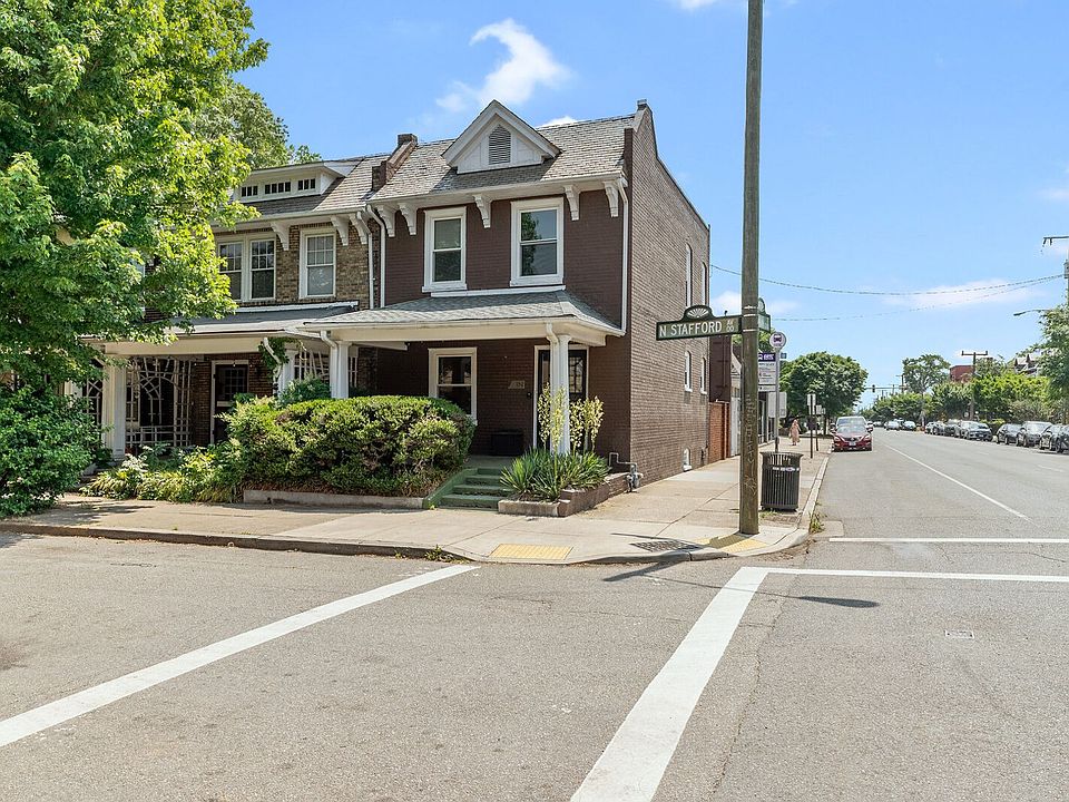 Welcome 1 N Stafford Ave...Fan living at its finest! This all brick, charming corner lot home was built in 1920 & boasts 2 bedrooms, renovated full bath with custom glass floor by local artist, large walk-in modern closet and 2nd balcony, 1374 finished sq. ft. w/ an addition 959 unfinished sq. ft. in the basement. Beautiful HW flooring throughout, and tall ceilings. Front & rear security doors & fenced rear patio for privacy.